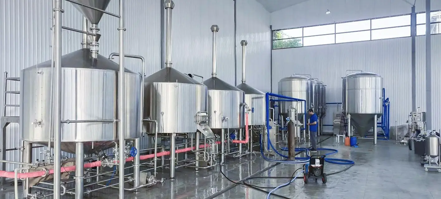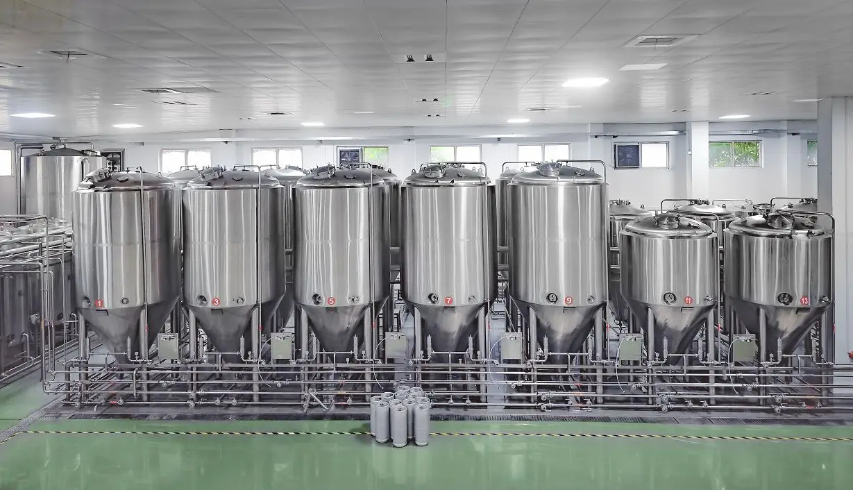 1. the stop alışveriş; 2. Malt değirmen; mash sistemi; Fermantasyon tankı;